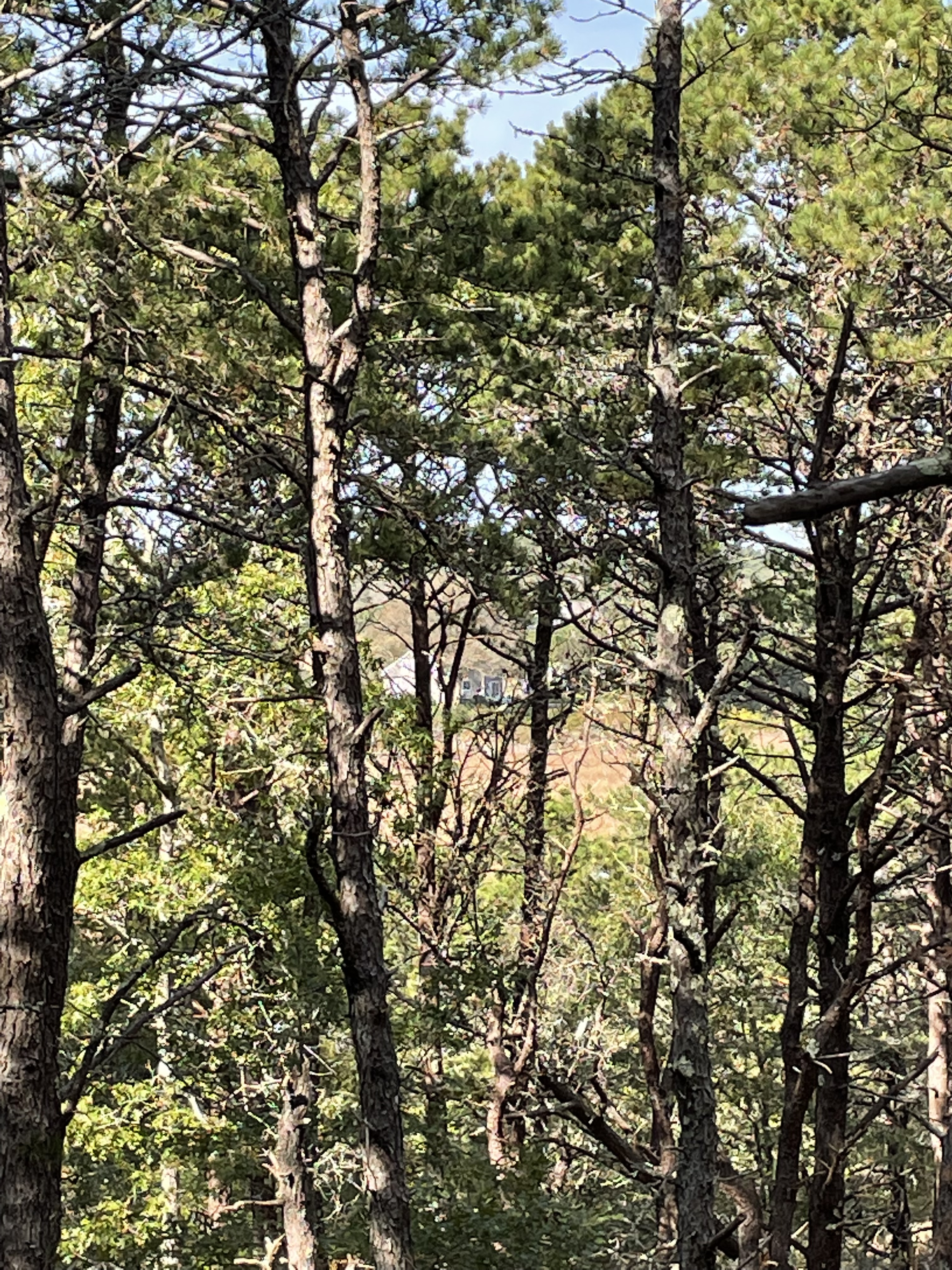 The Lombard’s house across the marsh, visible barely through the trees from the gravesite, and more clearly from a location roughly a quarter mile to the east.