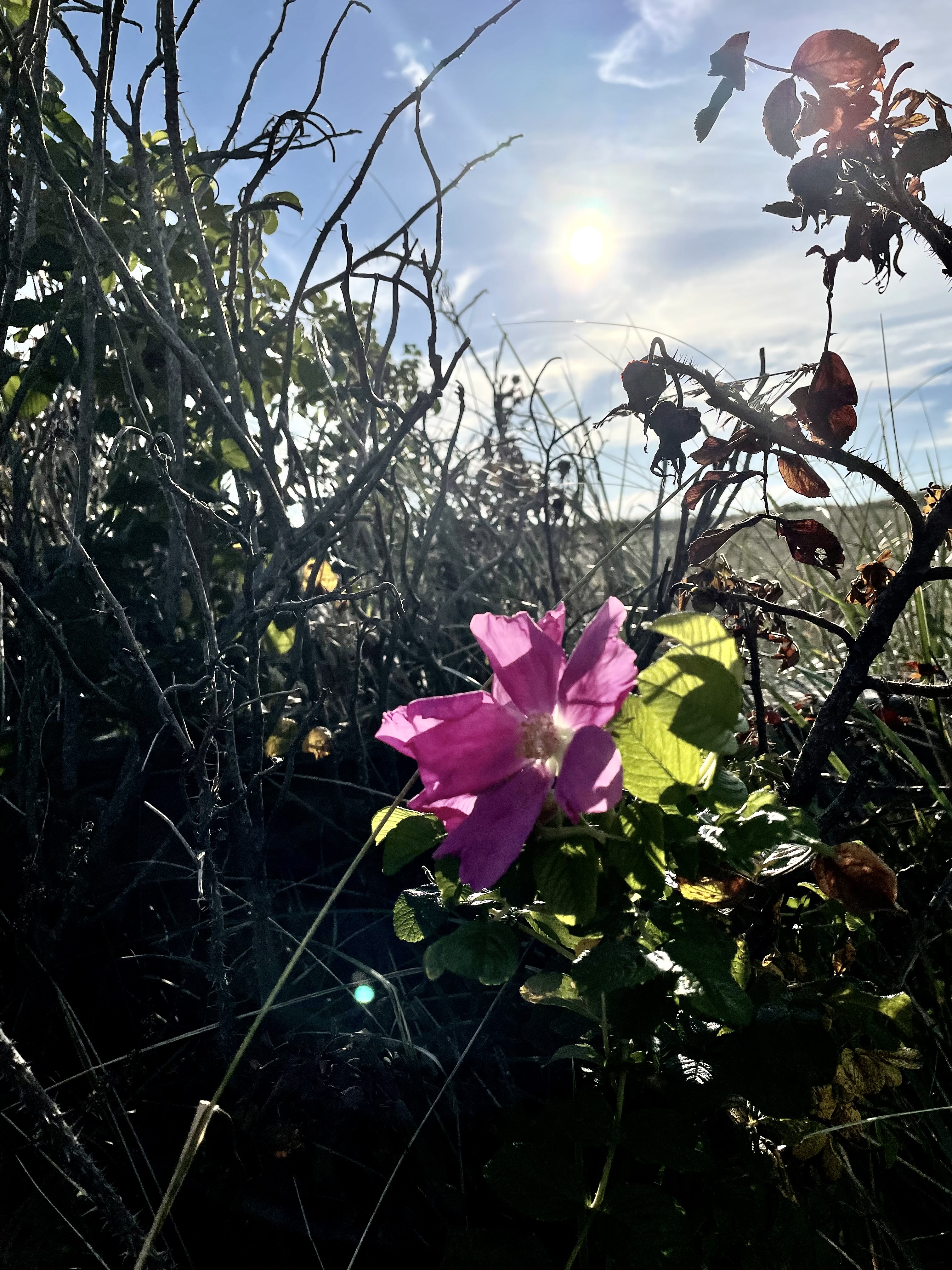 Native to Asia, legend has it that Rosa Rugosa arrived on Cape Cod in 1849 aboard the ship Franklin, wrecked off Nauset Beach. As the story goes, it made it ashore and naturalized. It had some human help. In the later 19th century, it was used as part of one of the first efforts to stabilize the shifting sand dunes. It’s salt resistant and has a root system that tolerates sand. The hips are edible, and ideal for rosehip jam.