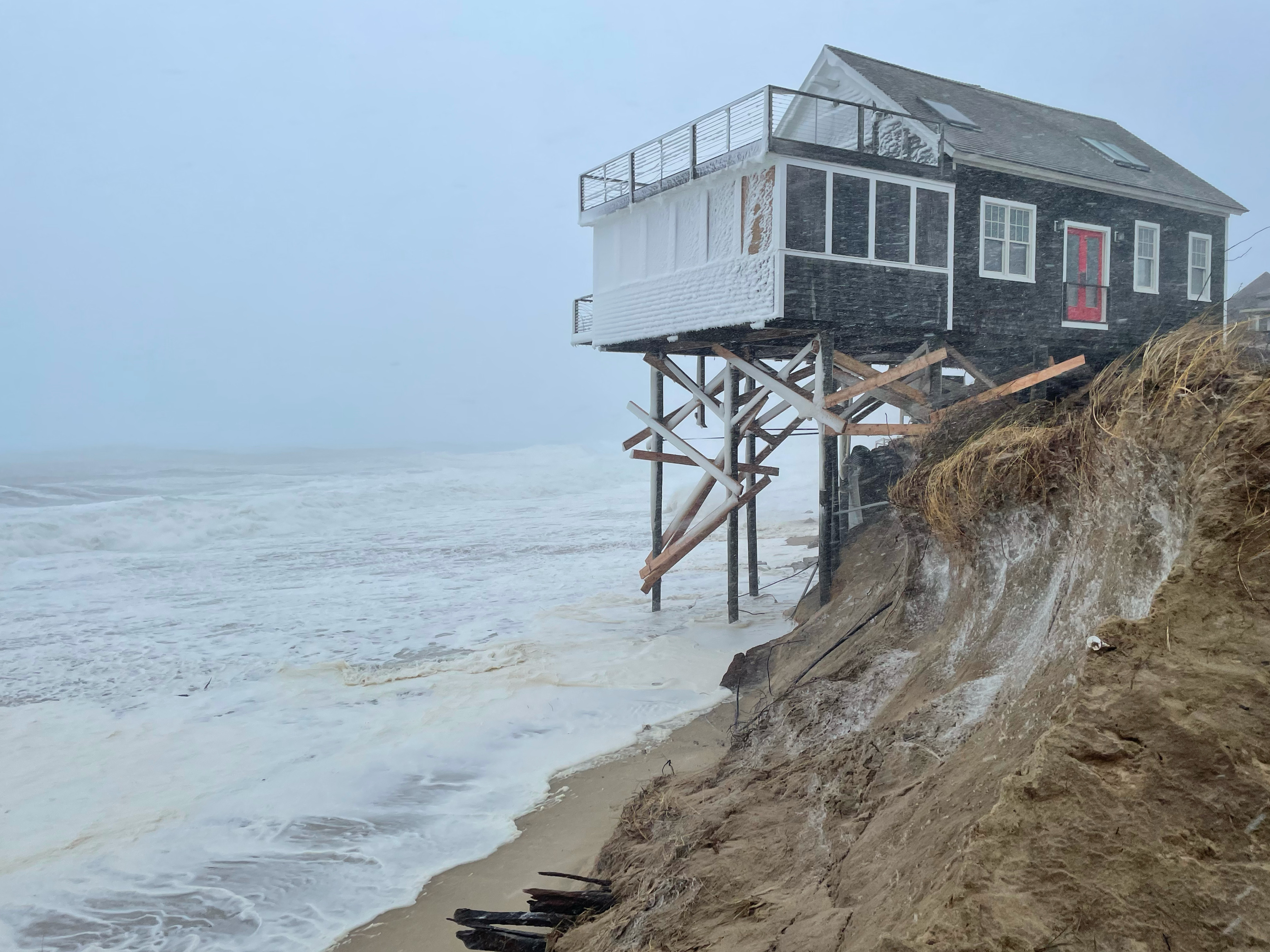 House at Ballston Beach on January 27, 2022, after first high tide of blizzard.