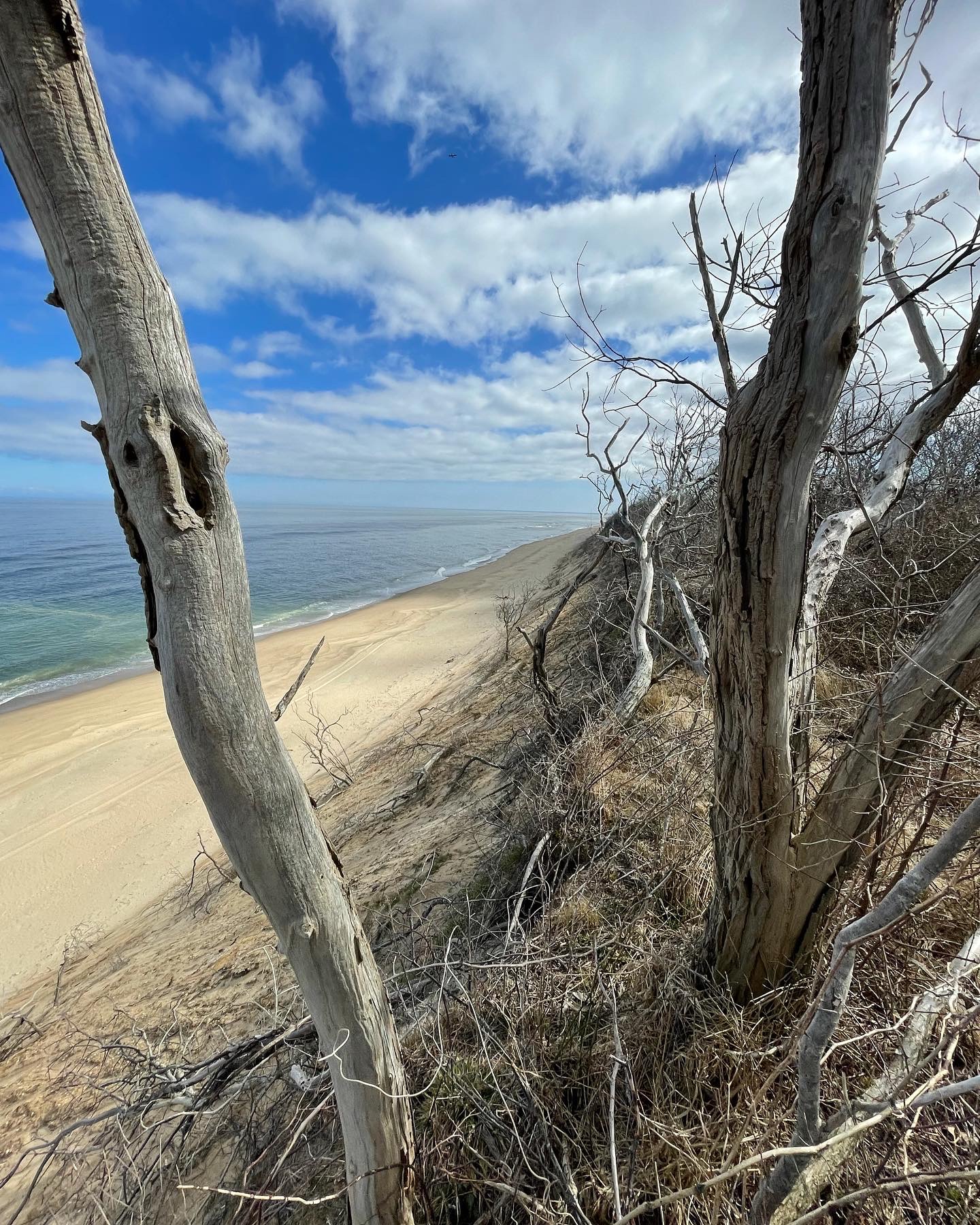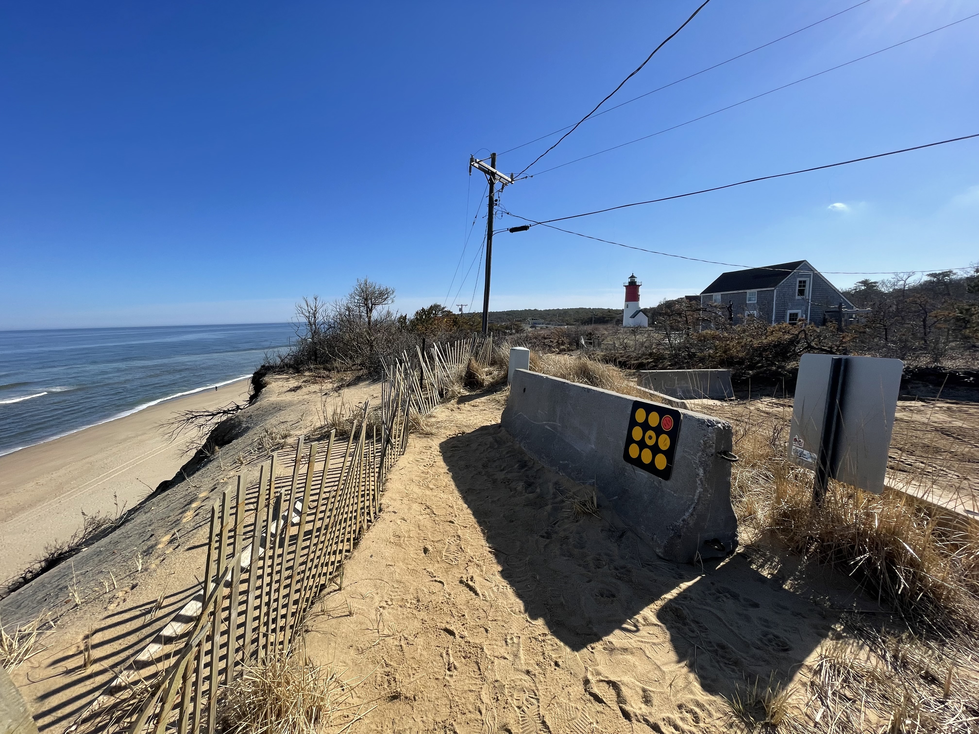 As with every hike near the Atlantic this winter, the lede is erosion. The edge took a hit with the succession of three hard winter storms. I know it’s part of a 10k year process, but it’s still jarring to see the dramatic changes. At Nauset Light, it’s especially pronounced with the closing of the coastal road.