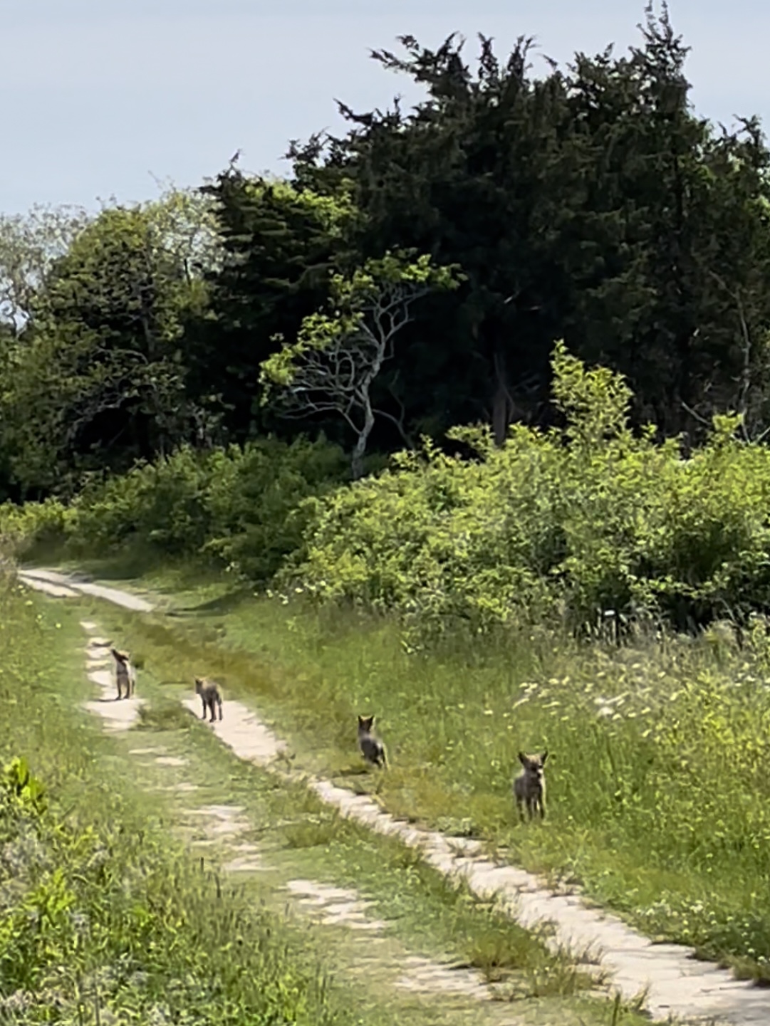 Yesterday, walking at Fort Hill with Richie, we stumbled upon a group of five or six Eastern Coyote pups. I was too slow to get video of the whole group, and a couple ran into the daisies and grass before I got my act together. They were super cute, but we turned around suspecting that parental units were nearby. No need for us to ruin their frolicking fun.