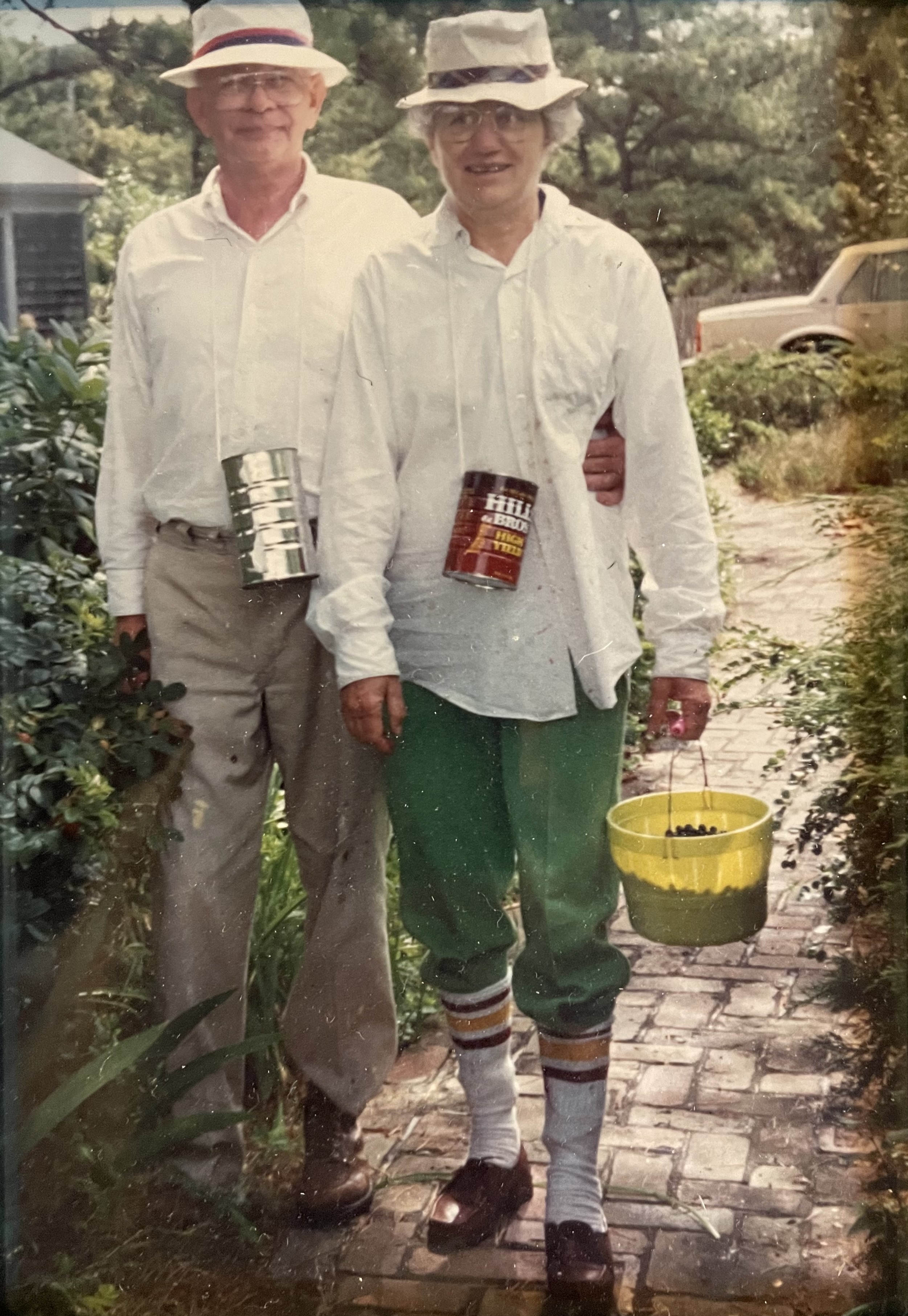 My parents in Wellfleet MA after blueberrying — probably around 1989.