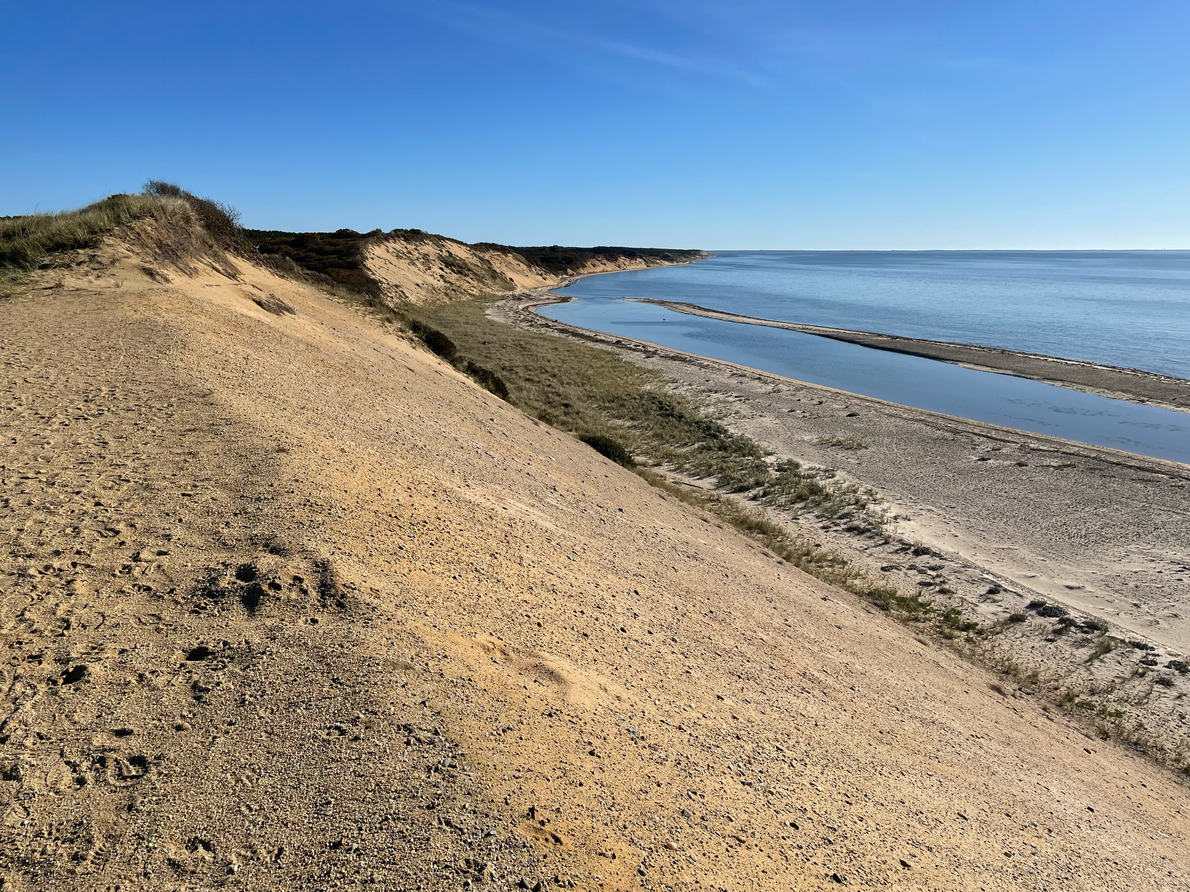 When Joe and I got out of the Jeep, I reflexively said we were about to see the best view on Cape Cod. I laughed at myself because we’d just walked in at least three spectacular places — any one of which could be said to be ‘the best view.’ Duck Harbor is a spectacular view because it offers the full effect of the Cape Cod spiral. To the north you can clearly see Provincetown and the bend at North Truro. On a clear day, you can discern the silhouette of the Boston area on the far horizon. Directly across Cape Cod Bay you can see Plymouth. And to the south you can follow the edge of Wellfleet’s barrier islands, Eastham, Orleans, and the shimmer of the towns of the mid-Cape.