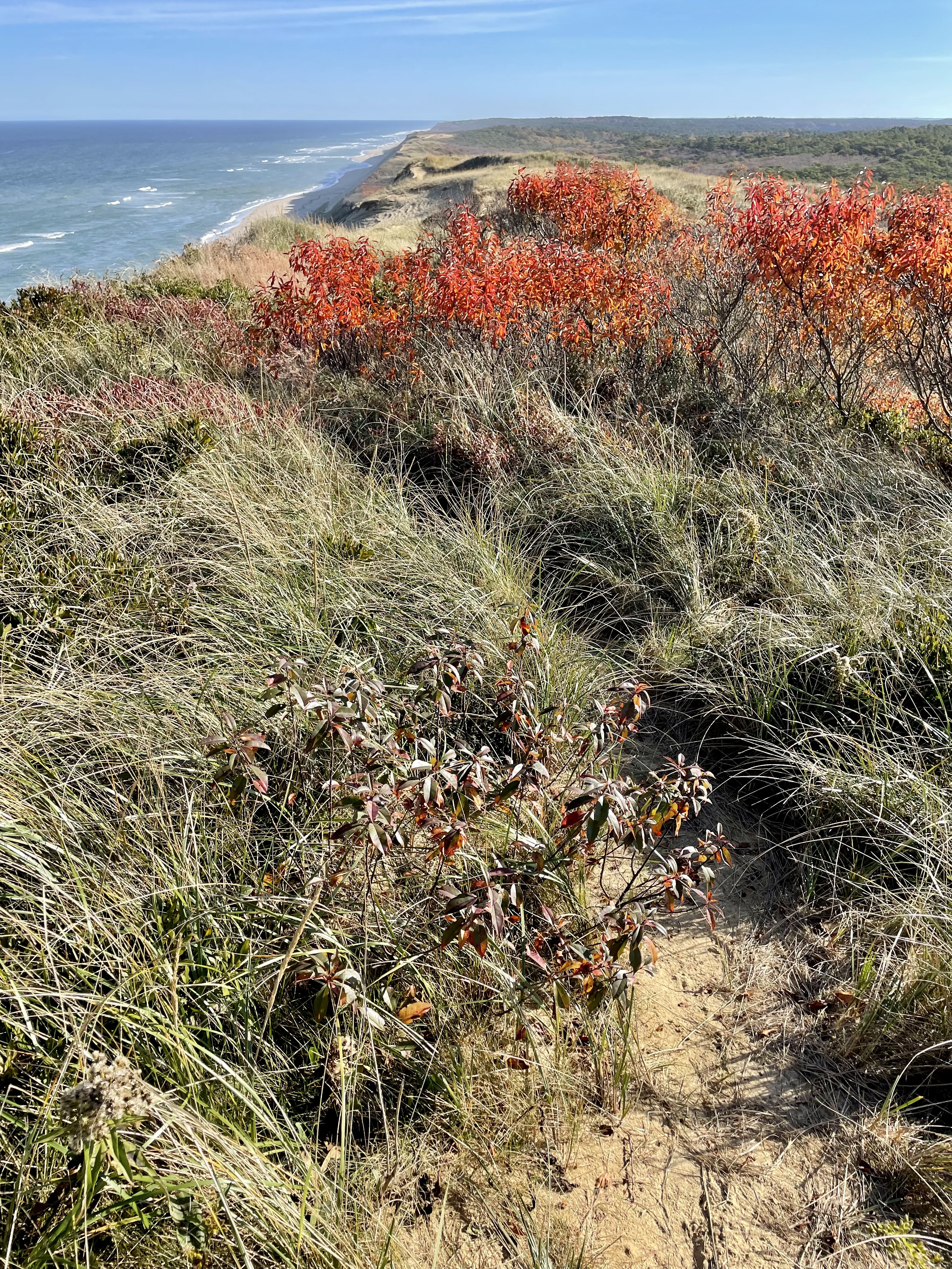 Yesterday it was all of this and foliage. The reds, golds, and oranges of the oak, huckleberry, and choke cherry offered a bold underscore to the cycles of life – and just for a moment their juxtaposition with the eroding Atlantic edge made ‘the poignancy of the impermanency’ almost unbearable.