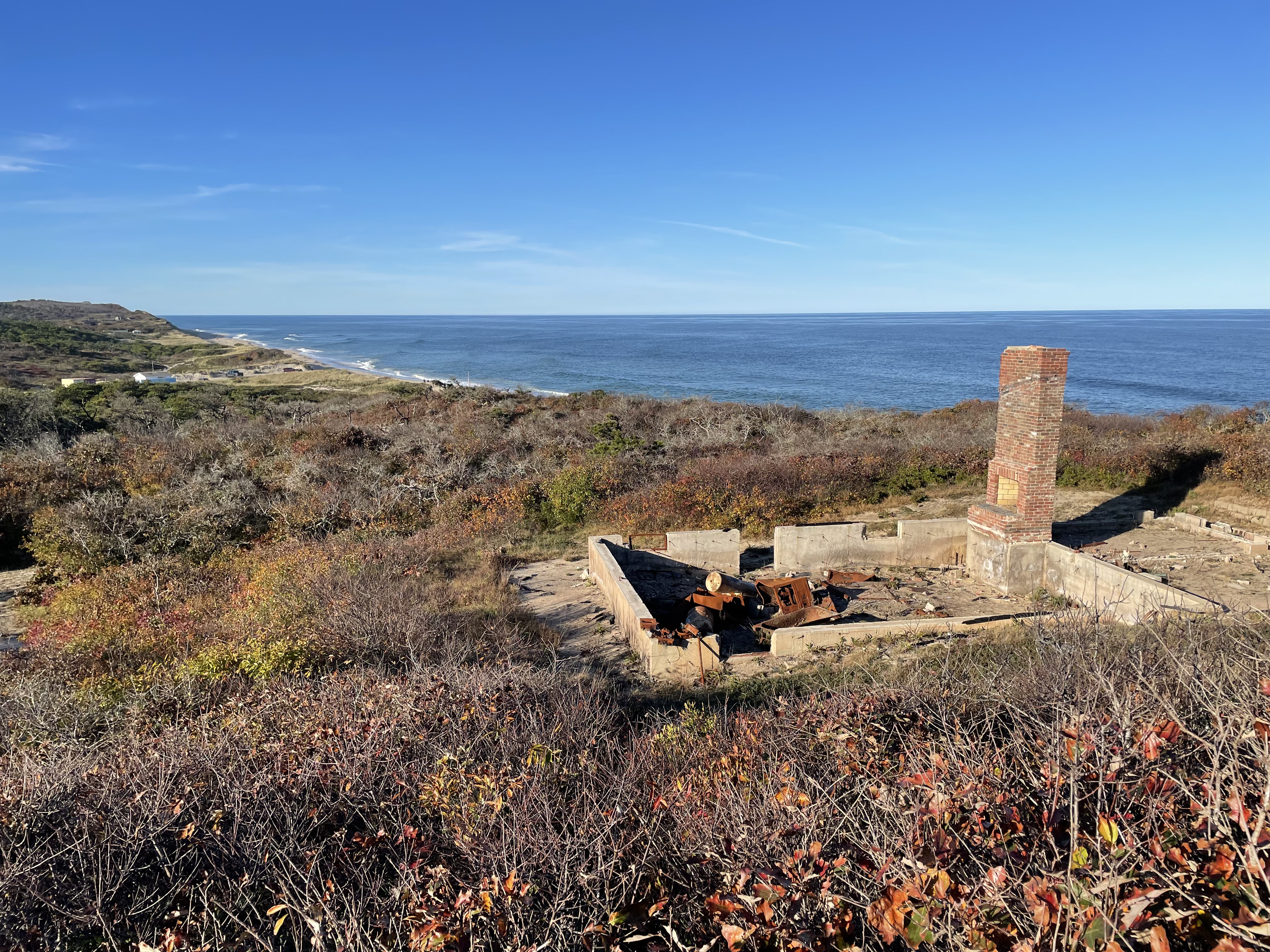 Joe and I approached the site toward the end of our long day of walking. The site is a marvel. It speaks to a quickly passing way of life. The fireplace and the cast iron detritus inside the foundation speak to the building’s mid-century origins. The view is spectacular, and hints at why so many people were against the founding of the Seashore — who wouldn’t want to spend summer days watching the ocean from this perch? But its demise also tells a story. This isn’t private space. The transcendent view and the possibility of witnessing sublime shifts in the ocean’s mood belong to us all.